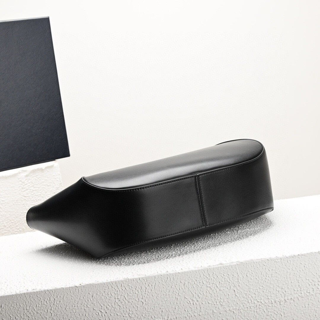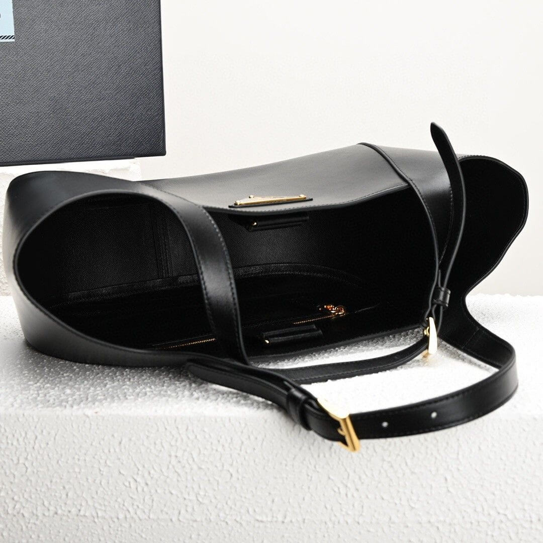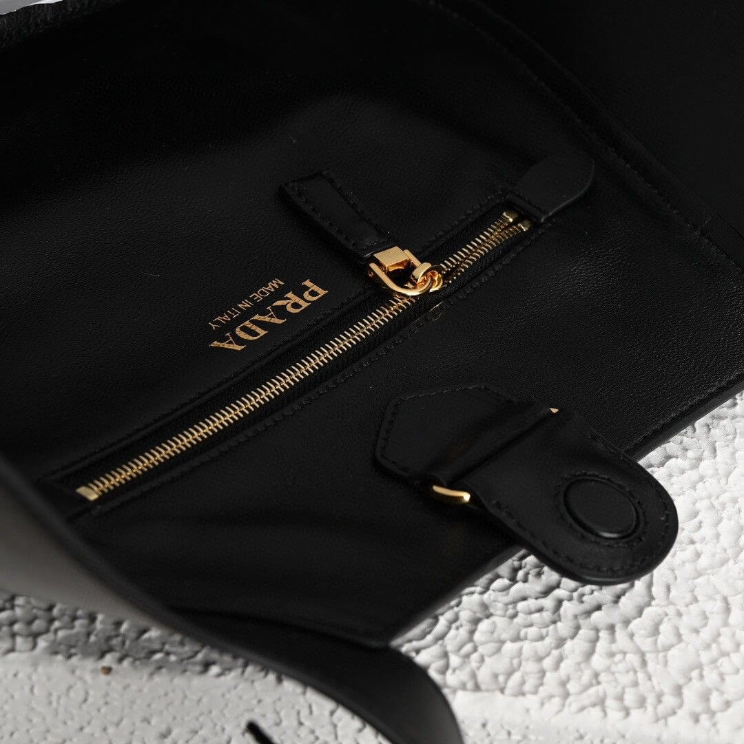 Black Prada Medium Enamel Triangle Logo Leather Tote Bag (high-end grade)