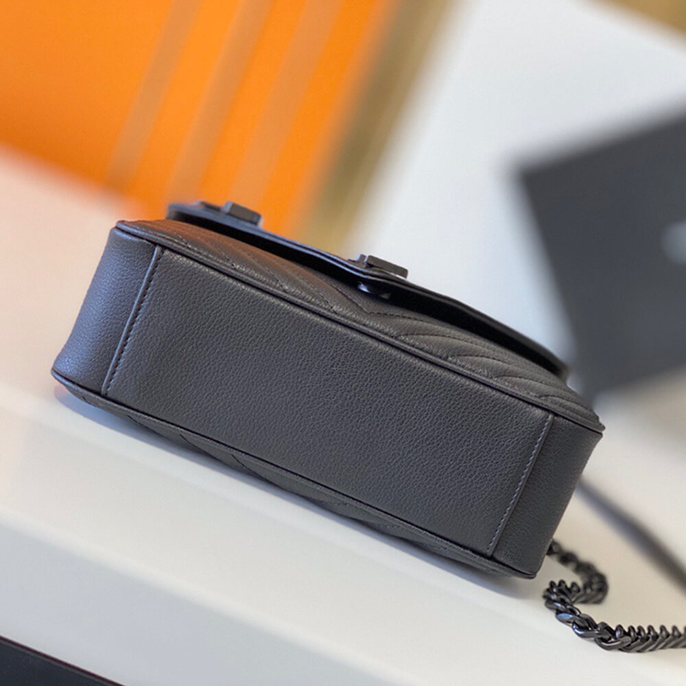 Antiqued-gold chain and black leather shoulder strap, black leather handle