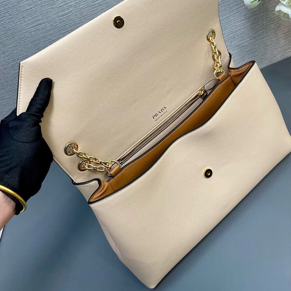 Travertine Prada Medium leather shoulder bag (High-end Grade)